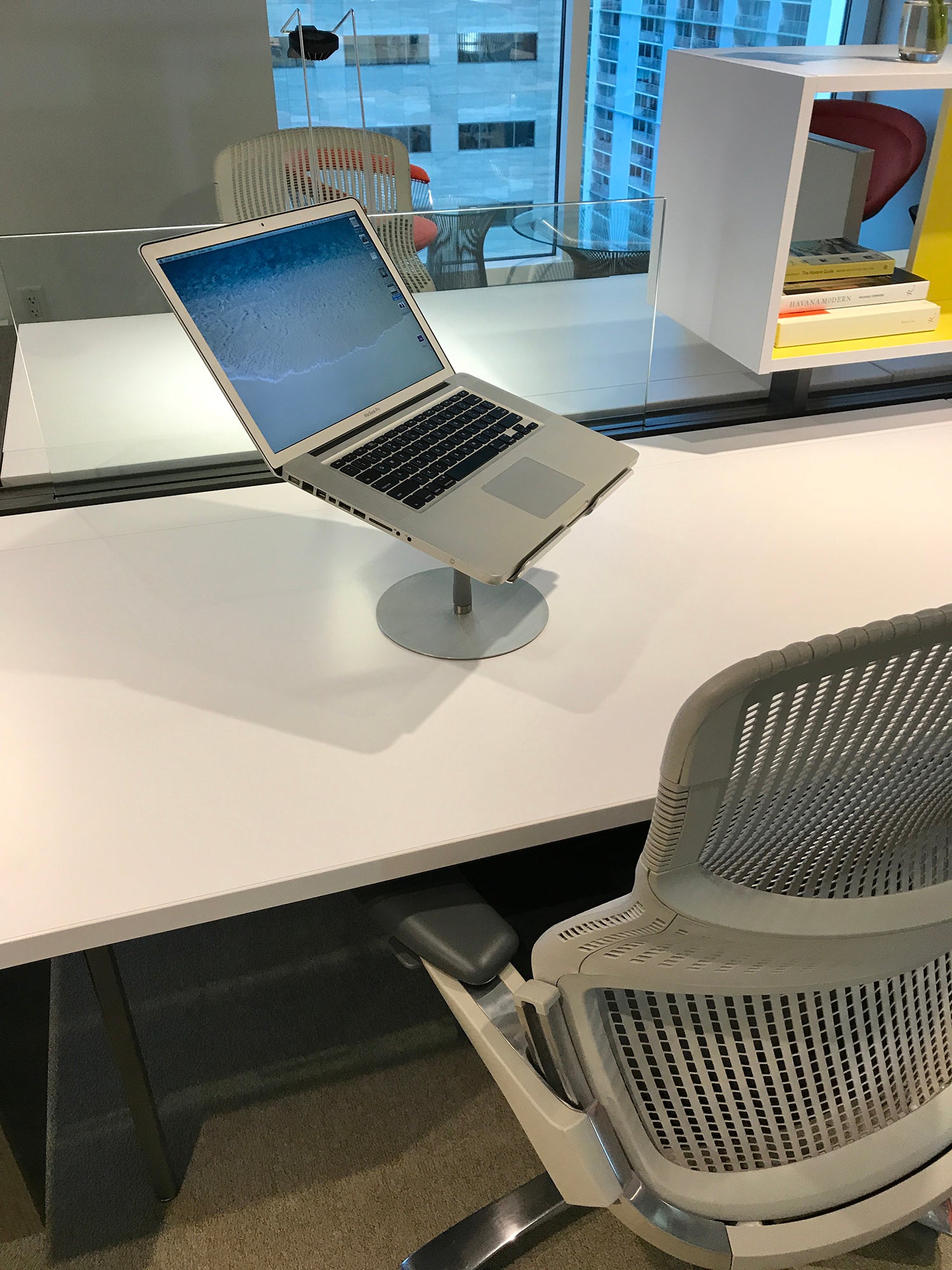This portable laptop stand works great with Apple MacBooks, PC Laptops and virtually any 10-15” notebook or large tablet. This flexible standing desk is lightweight, versatile with a modular design that can be quickly and easily assembled for mobility without any tools and travels flat to 1" thickness inside its optional FLEXTOTE case which can be purchased separately.